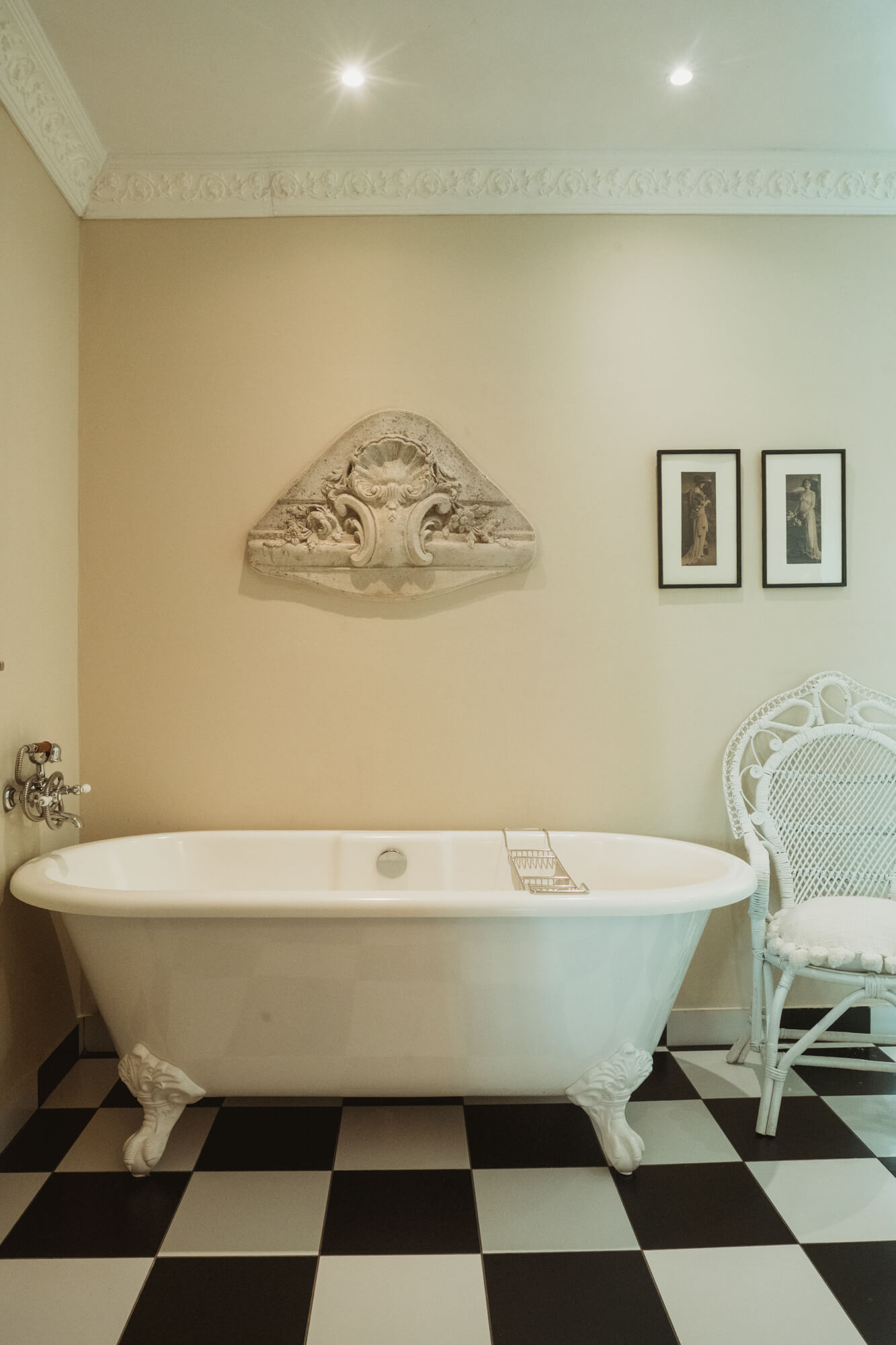 Yvette Guilbert, one of the best know cabaret singers in Paris around the turn of the 1900s, was a favourite model of the painter Toulouse-Lautrec. Two prints of Yvette, done by Lautrec, are seen in this room, while the colors used in the interior decoration complement these paintings. A unique play on modern color combines with an antique feel.