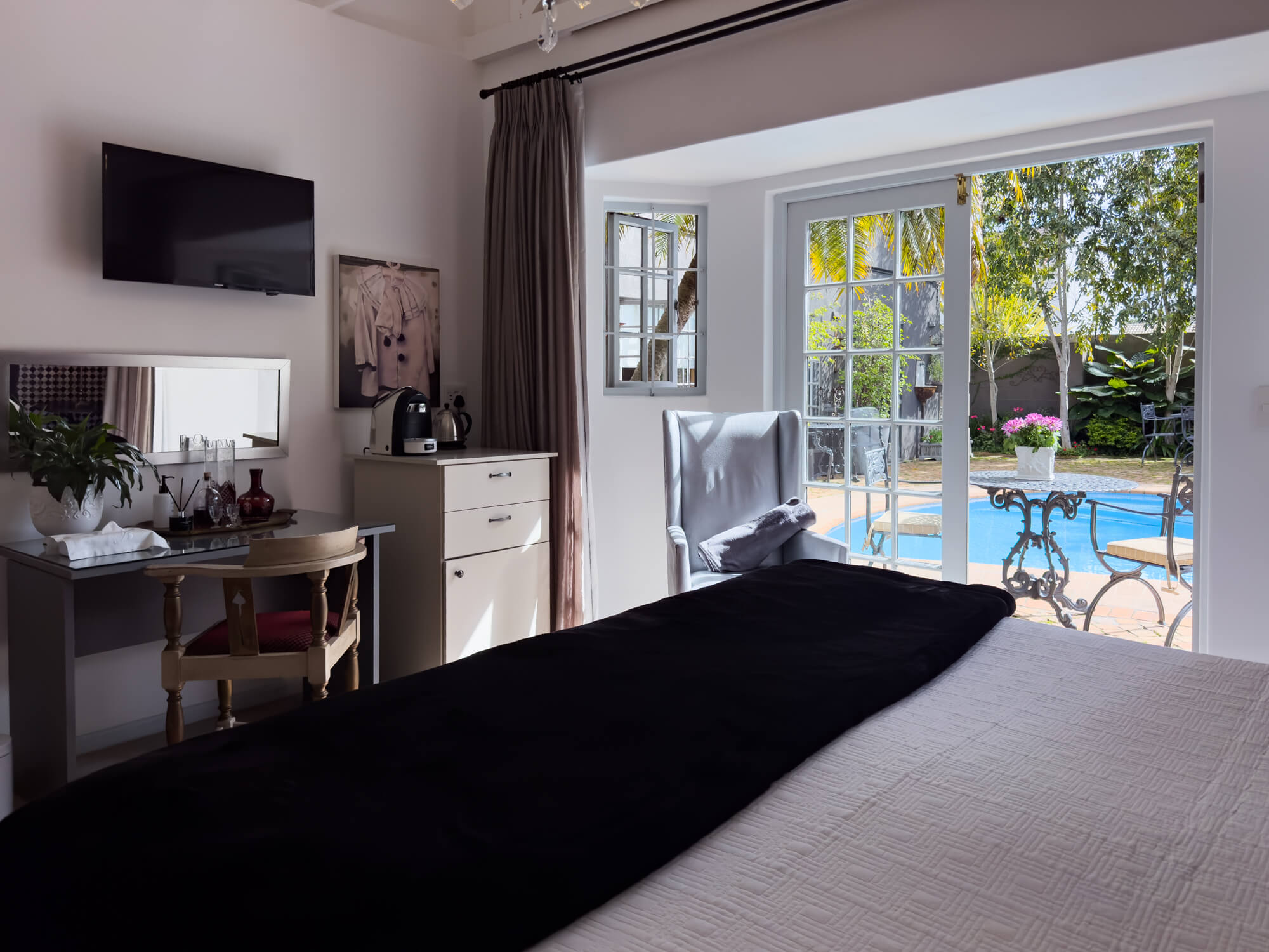 Discover the exceptional amenities that set our boutique guest house apart—from luxurious bedding and tranquil poolside areas to thoughtful in-room touches, modern conveniences, and warm, personalised service.