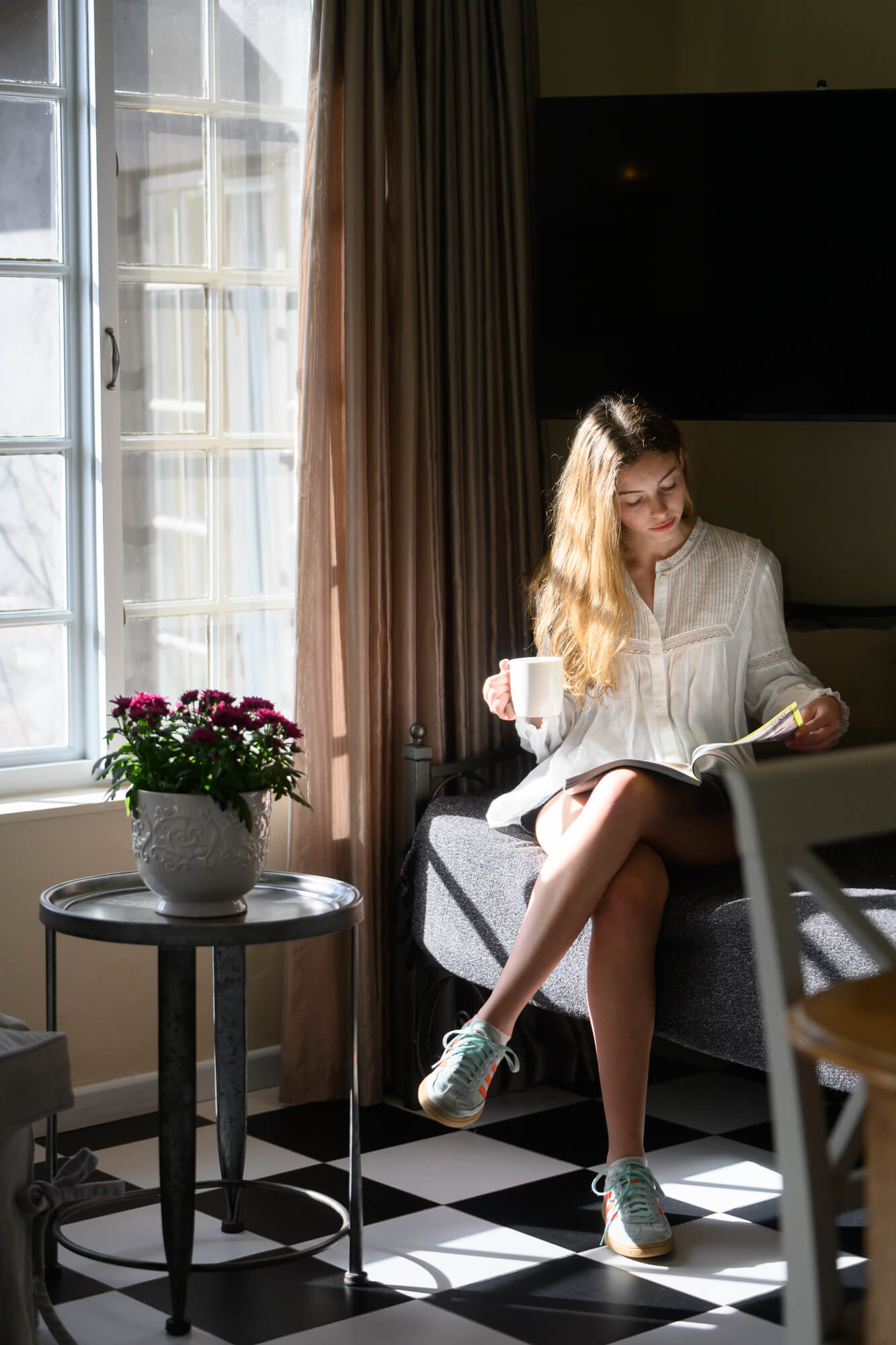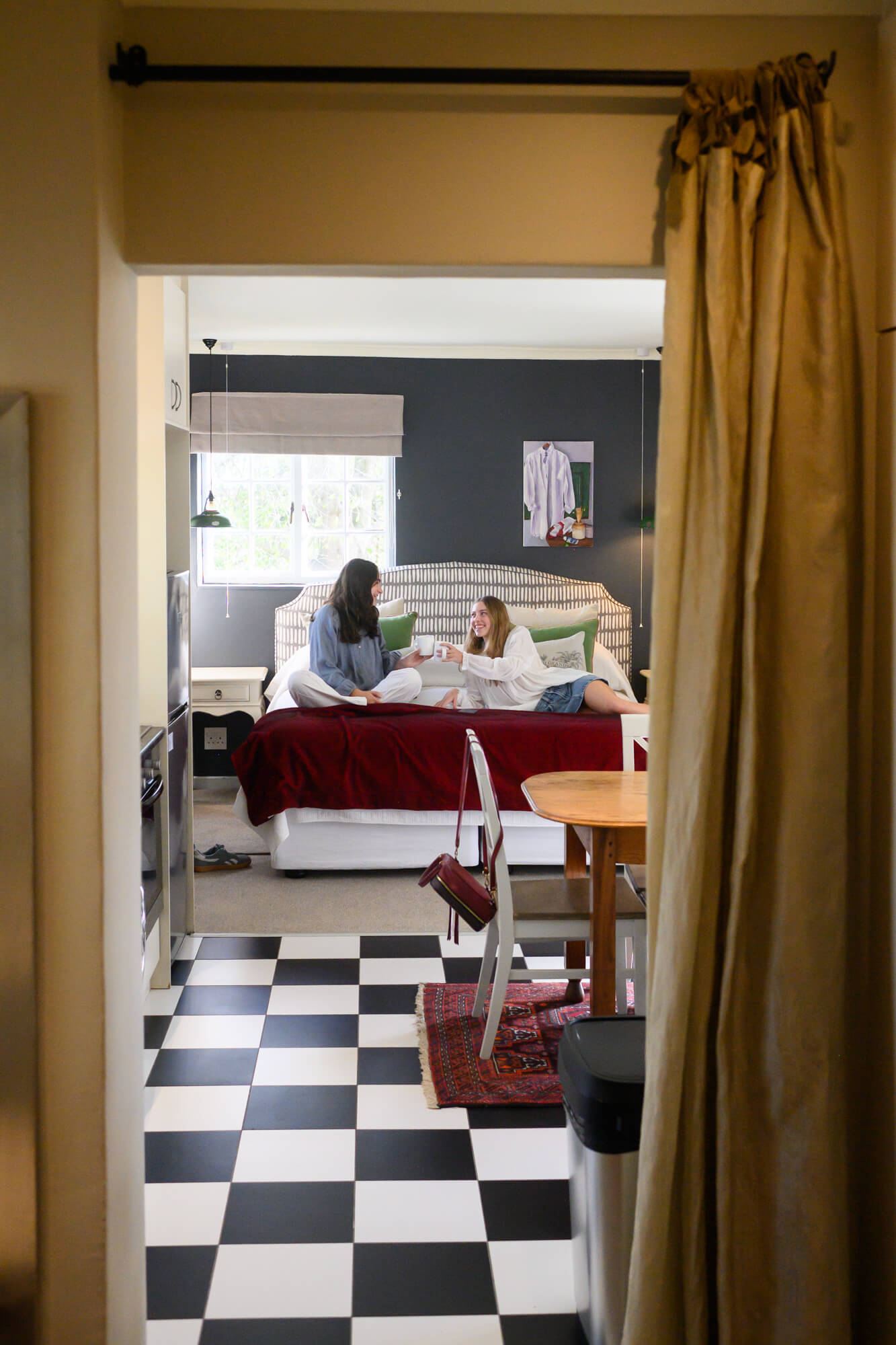 Sun-drenched room styled with rich colours and mosaic tile detail