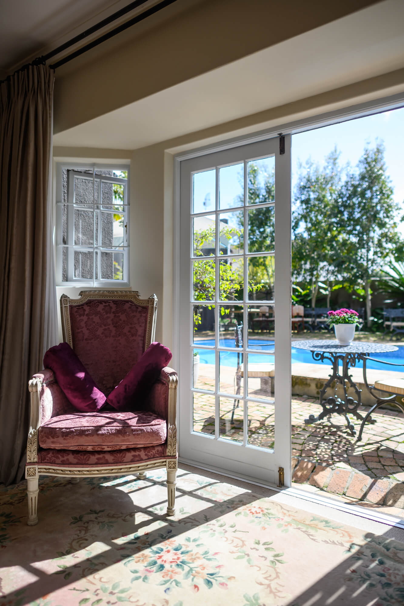 Sunny Poolside Room with French Doors